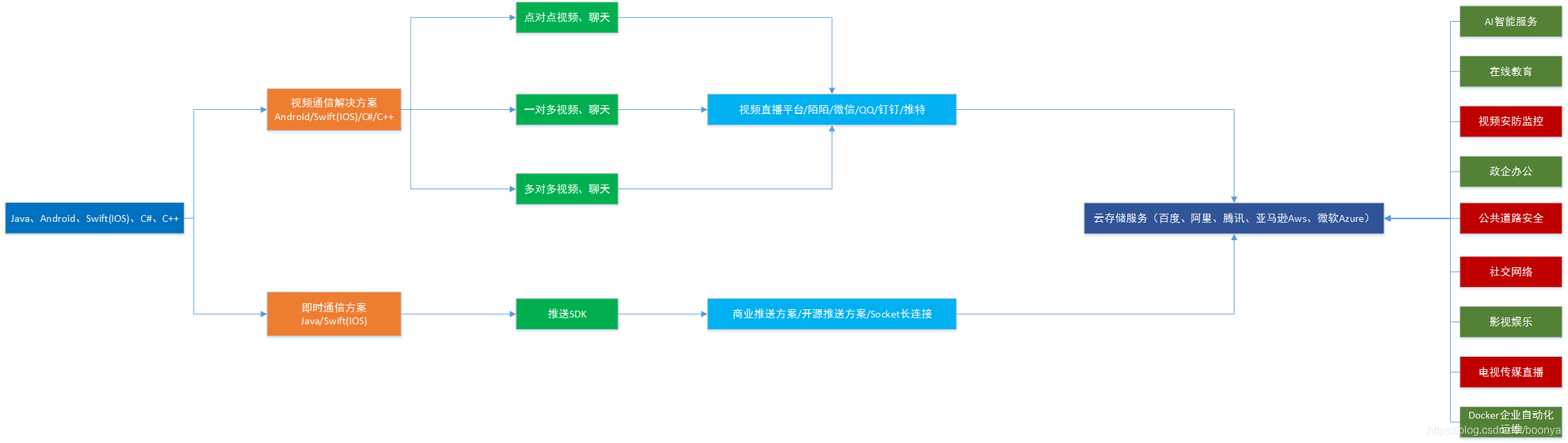 经过一段时间的思考,还是觉得做传统行业缺乏动力,沉浸在业务的海洋里可能会溺死。总结一下技术栈和相关的知识,也相当于是个普及吧。前两年视频直播很火,经过这几年的发展市场也在逐步地规范,尤其涉黄主播在直播领域泛滥成灾,也为视频行业的发展蒙上一层朦胧的薄纱,看不清楚未来该怎么发展。 但是除了这些,我们如果好好利用可以发掘很多传统行业对视频的需求还是很旺盛的。并且传统行业互联网+的概念和云结合之后几乎云无处不在了。